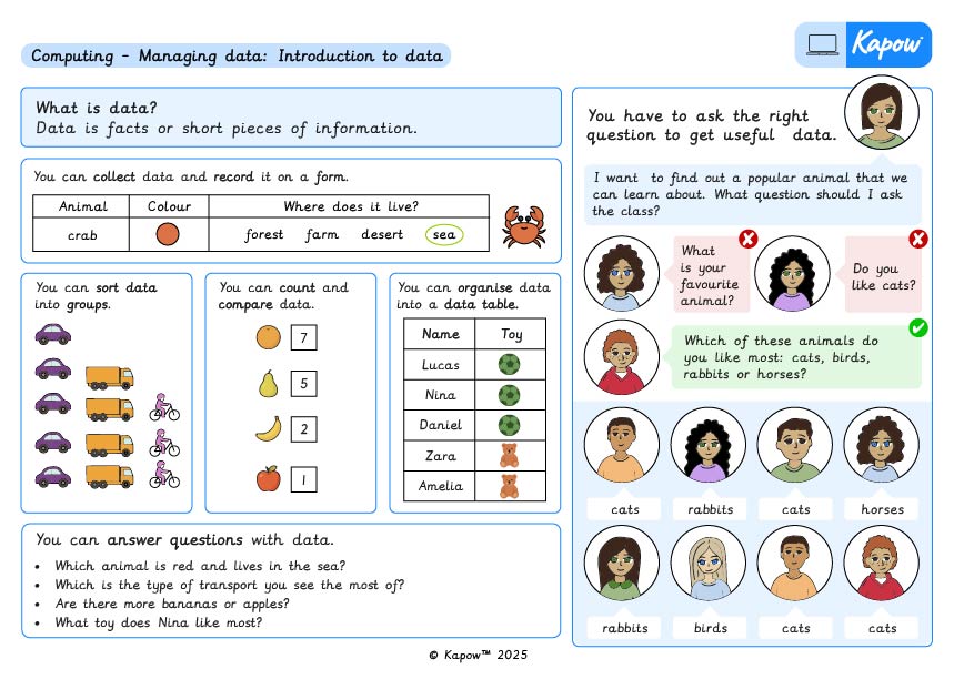 At Kapow International, we provide knowledge organisers to support Computer Science lessons. These organisers offer clear, visual summaries of the key vocabulary and essential learning from each unit, helping learners recall and review knowledge as they progress.