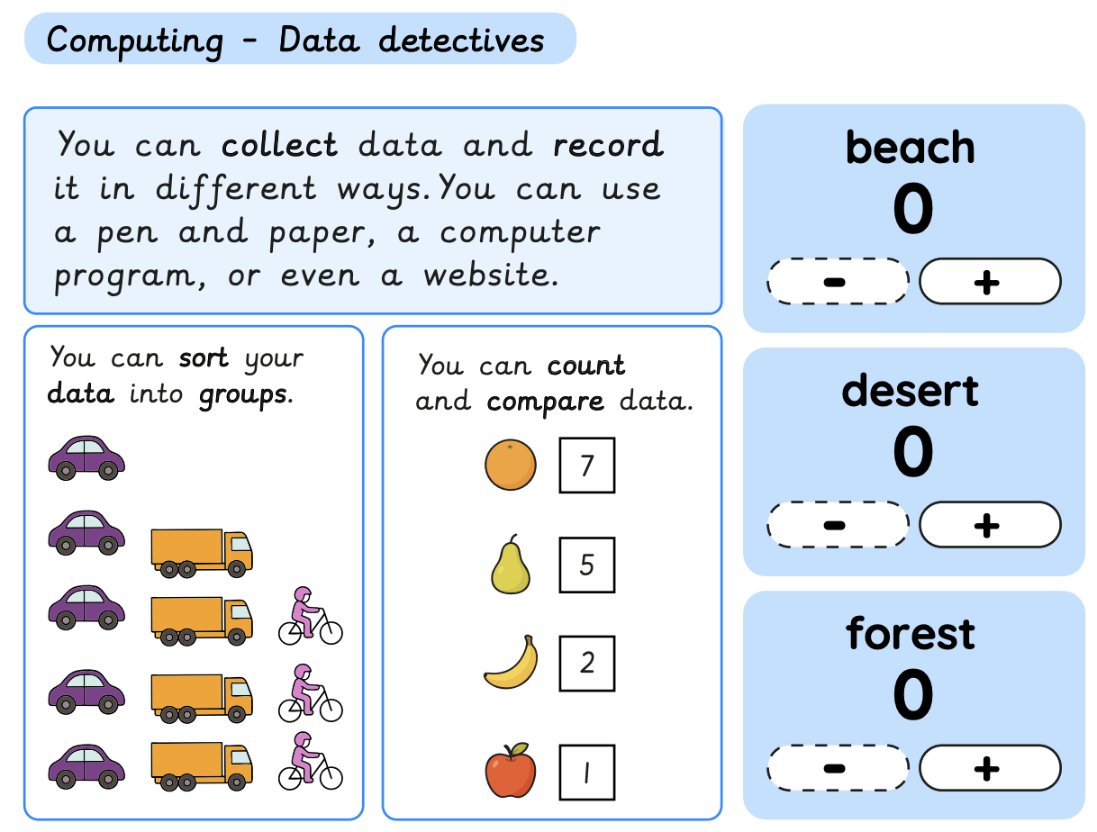 Learning what categorical data is and the different ways that it can be represented, learners develop an understanding of why data is useful and how it can be collected and presented.