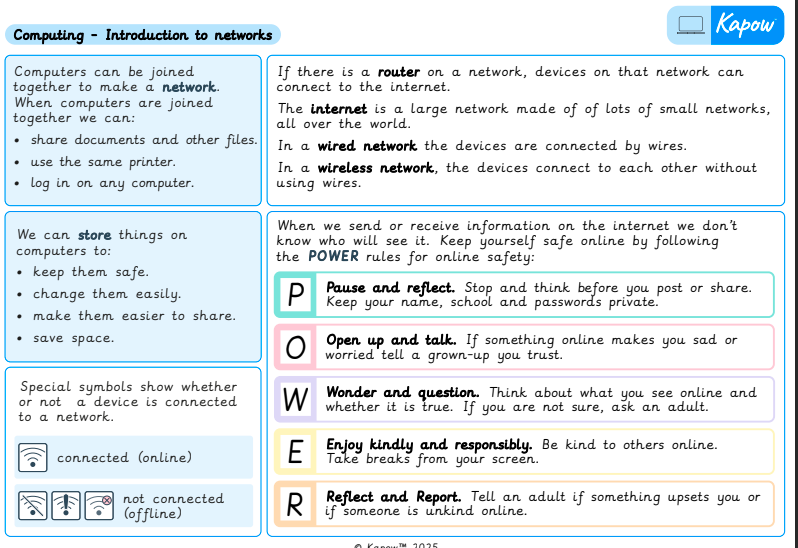 Knowledge organiser – Computing S2: Introduction to networks